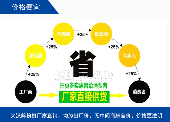 大漢篩粉機(jī)廠家直銷,均為出廠價(jià),無中間商賺差價(jià),價(jià)格更透明,而且我們公司位于河南省新鄉(xiāng)市,設(shè)備的生產(chǎn)成本和運(yùn)輸成本普遍較低,所以可以節(jié)省大量的資金浪費(fèi),篩粉機(jī)價(jià)格更便宜。